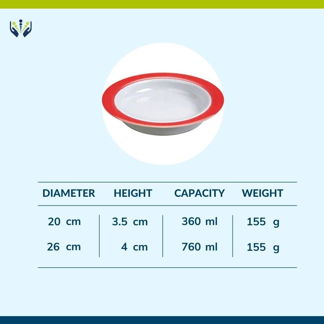 - Red colour rim for clear visibility and to stimulate appetite